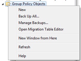 The second method uses the Group Policy Management Console. Fire up gpmc.msc, and then expand your domain. Right click on ‘Group Policy Objects’ and then choose ‘Back Up All’ as shown below: